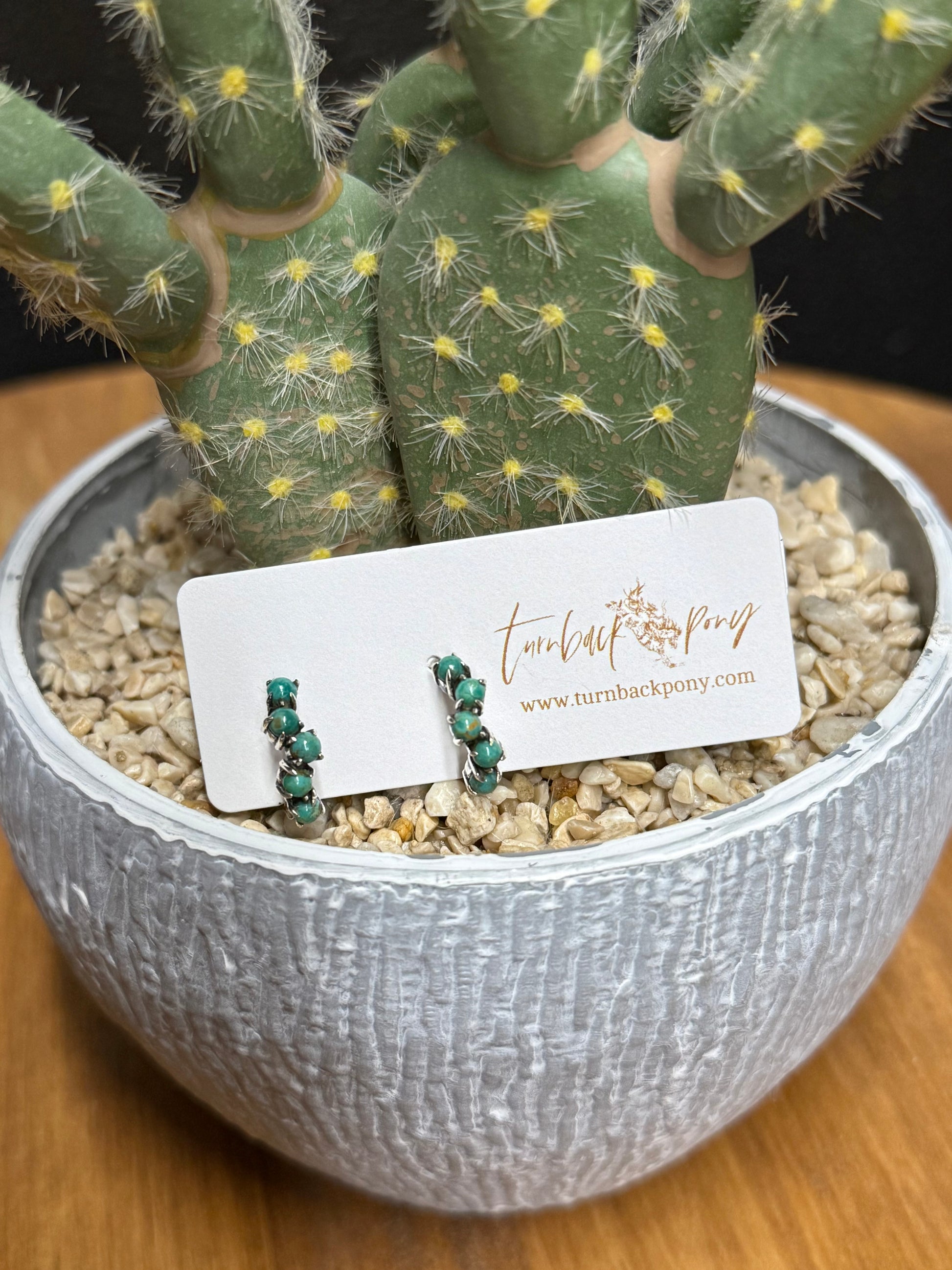 Handmade, Authentic Turquoise, Sterling silver huggie hoop earrings