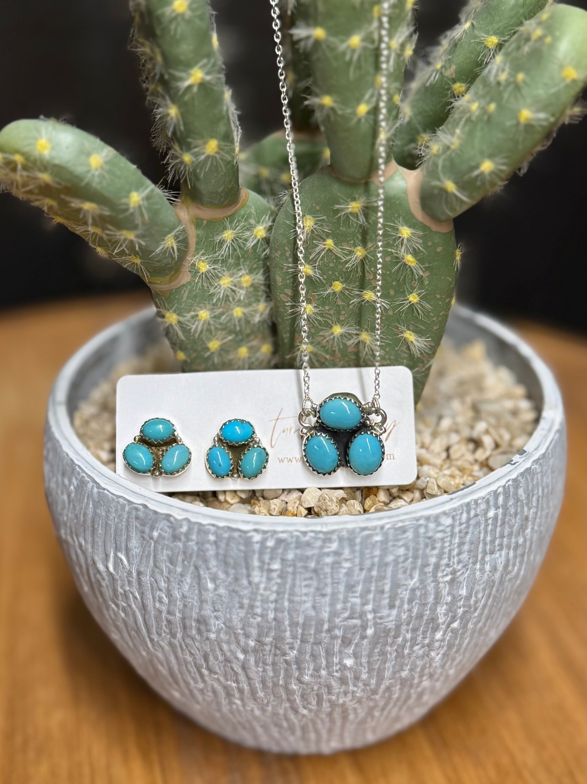 Handmade, Authentic Turquoise, Sterling silver stud earrings and necklace set
